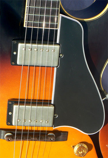 Responding to demand from traditional players, Gibson has released a small number of faithful reissues of the 175, matched to original specs of the classic 1959 design. Designated ES-175 VOS (Vintage Original Spec), the model has aged nickel hardware throughout, including the pickup cover, wriggle tailpiece, Kluson Deluxe single ring tulip key tuners, wide bevel 5-ply guard, and gold bell knobs, all as used in the late 50's. The Gibson MHS humbucking pickups are more lightly wound in the traditional style (4900/5100 winds per coil) for a more open, airy tone.