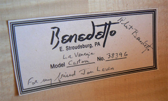 Notes: He wrote the book on archtop guitar building. Literally. The most influential jazz guitar builder of the late 20th century, Bob Benedetto almost single-handedly jump-started the contemporary revival of fine handbuilt archtop guitars, and his client roster is an A-list of the topmost echelon of jazz guitar talent. Many of Benedetto's design concepts have been adopted as benchmarks, and an entire generation of today's top-tier builders count themselves as students or disciples.