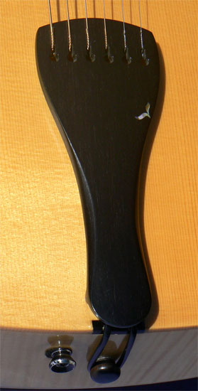 Hardware: Solid inlaid ebony tailpiece and compensated adjustable bridge; black Schaller Mini M-6 with ebony keys; adjustable truss rod.