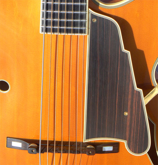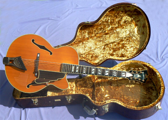 Hardware: All original gold hardware includes Grover Super Rotomatic sealed back tuners with Imperial keys. Macassar ebony hardware includes stairstep tailpiece, bound pickguard, and pearl inlaid adjustable compensated bridge.