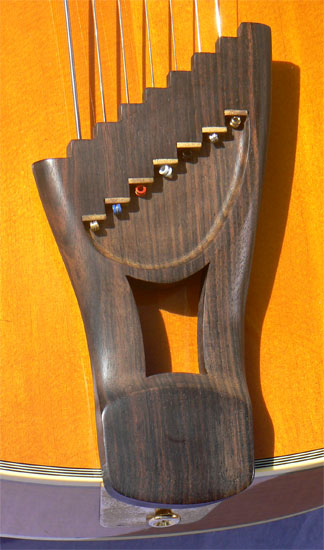 Setup: This instrument is strung with medium gauge flatwound nickel strings. The guitar will accommodate lighter or heavier gauge strings, according to preference. String action is set at 4/64" to 5/64" at the 12th fret, with moderate relief. The action may be lowered or raised to your requirements with the adjustable bridge.